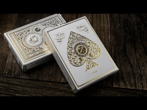 Prachtige speelkaarten ontworpen door Simon Frouws. Het deck komt in een ultraluxe wit karton met gouden opdruk doosje. De achterkant is prachtig. Ze zijn wit met een gouden afbeelding/print....